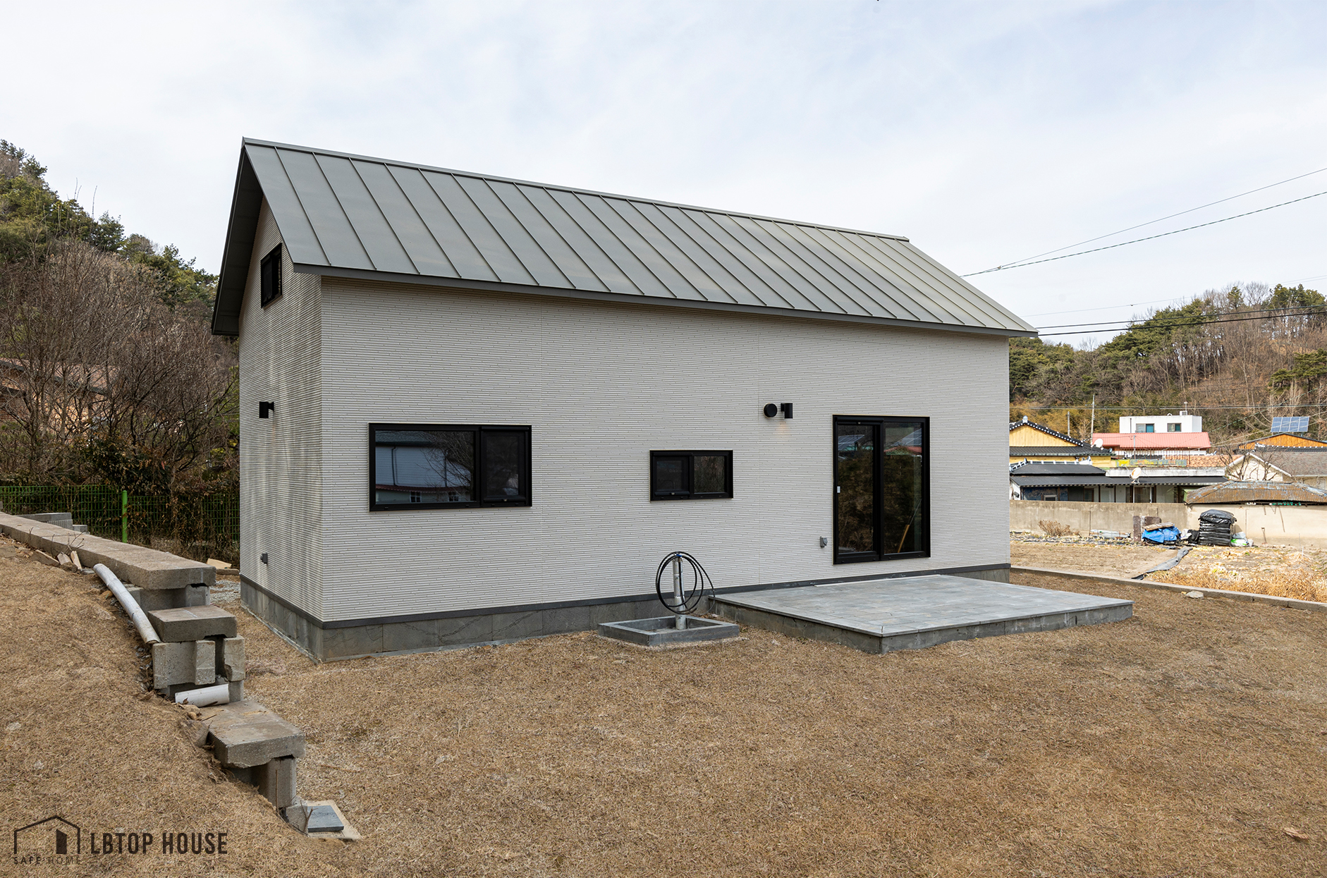 style 모던 floor space 46.95㎡(14평) 건축공법 경량목구조 건축외장재 세라믹사이딩 16t 건축지붕재 리얼징크 1층 면적 46.95㎡(14평) 다락 면적 28.21㎡(8.5평)